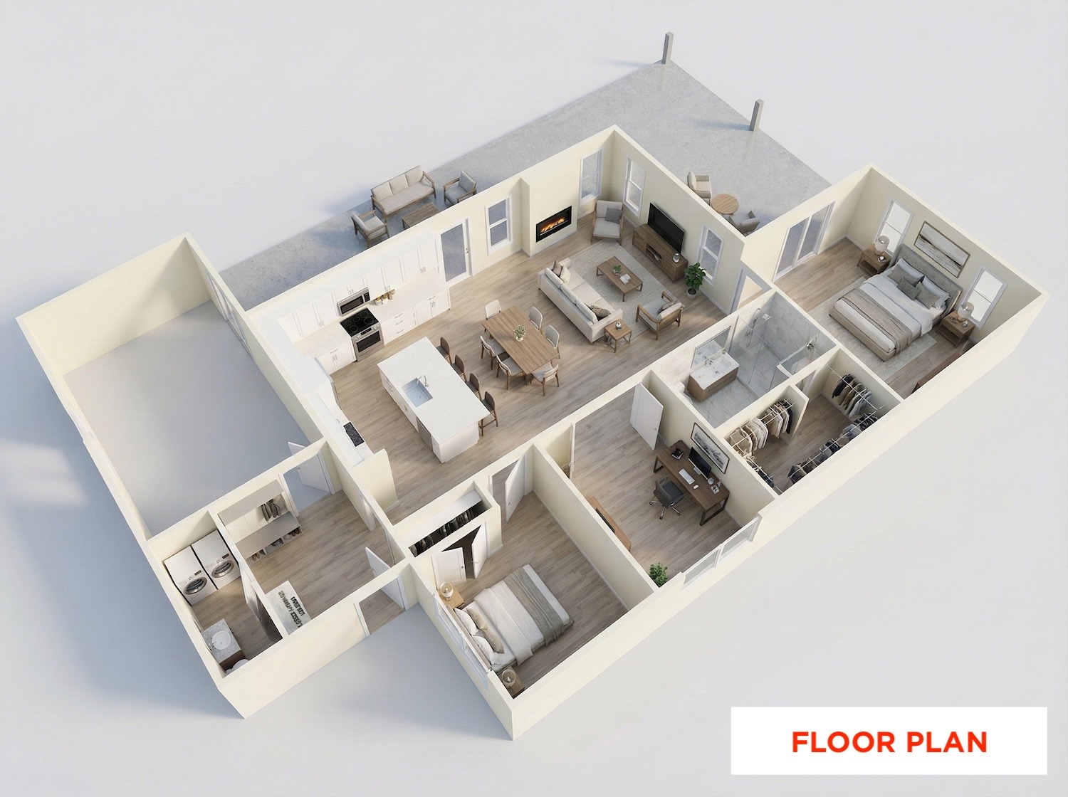 A standard spec includes LVP or laminate flooring, mid grade tile, builder grade interior doors and trim, and functional but not high-end kitchens and bathrooms. The emphasis is on durability and value instead of designer aesthetics. Layouts at this tier tend to be straightforward, with minimal structural customization.